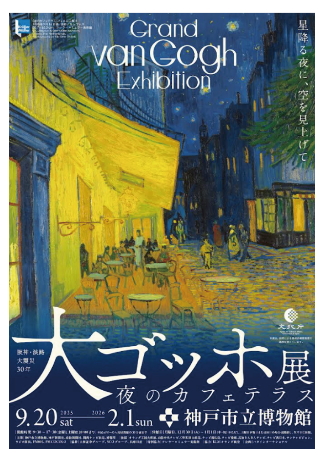 2025年9月20日(土曜)~2026年2月1日(日曜)の期間、兵庫・神戸市立博物館にて阪神・淡路大震災から30年の取り組みのひとつとして「阪神・淡路大震災30年 大ゴッホ展 夜のカフェテラス」を開催いたします。