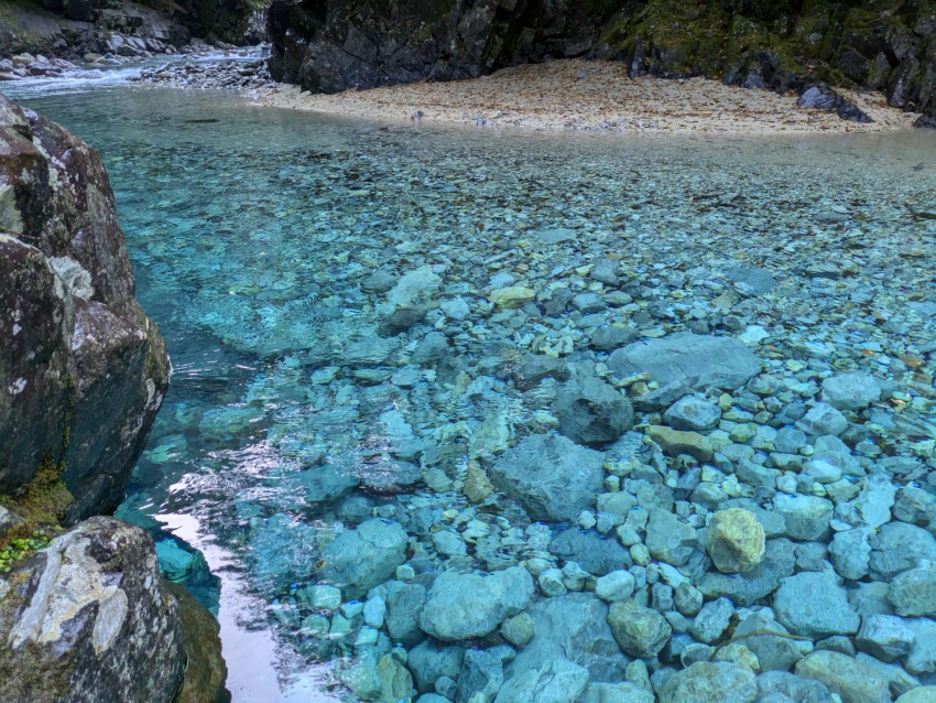 エメラルドグリーンに輝く清流は、まるで宝石をちりばめたように澄み渡り、谷に足を踏み入れた瞬間から心が洗われるような感動が広がります。