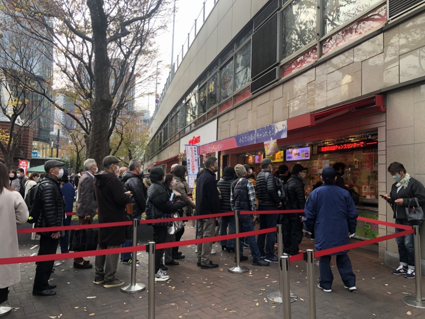 西銀座チャンスセンターの1番窓口には毎年長蛇の列ができることでも有名で、ジャンボの季節の風物詩となっています。