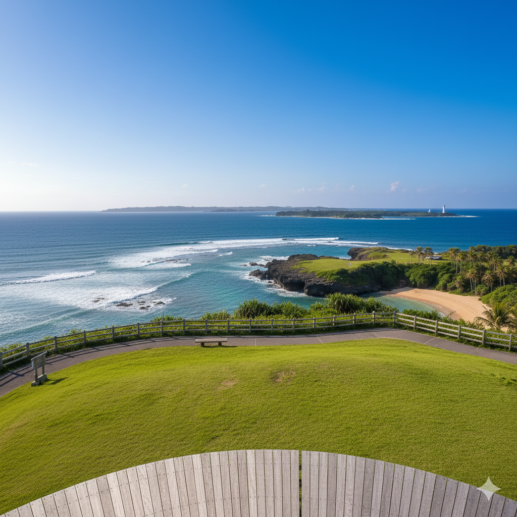 展望台から見下ろす眼下には、サンゴ礁が創り出した「アマミブルー」の美しい海と穏やかなラグーンが広がり、その壮麗な景色は「奄美十景」の一つにも選ばれています。奄美ブルーの海と空を存分に感じられる、島を代表するスポットの一つです。