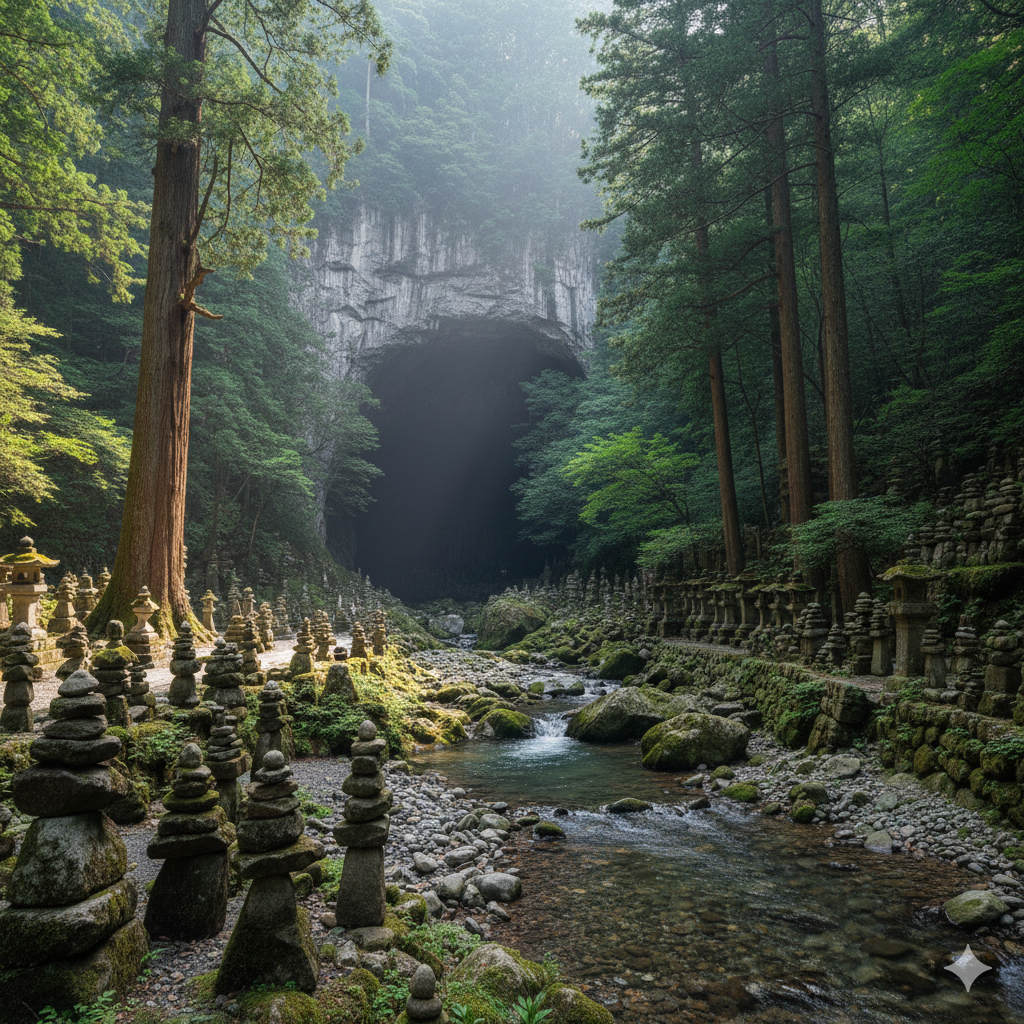 そこから渓流沿いの静かな遊歩道を歩いた先にあるのが、神々が集まり相談を重ねたといわれる大洞窟「天安河原」です。一歩足を踏み入れれば、周囲に積まれた無数の石塔と、洞窟の奥から伝わる荘厳な静寂に圧倒されるはず。ここは、祈りが形となり、神々の気配が今も残る特別な聖域。自分を見つめ直し、心の奥底から浄化されるような、唯一無二の神秘体験があなたを待っています。