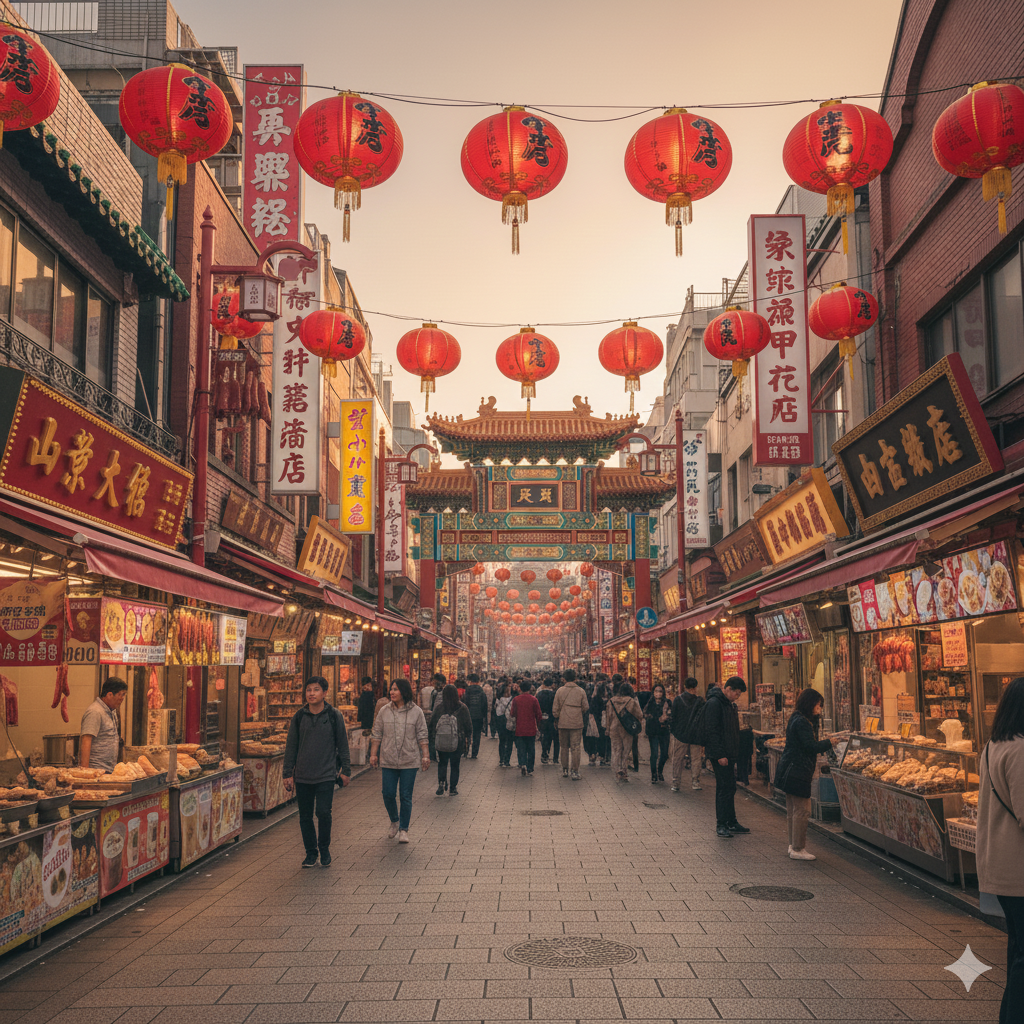 東の「長安門」をくぐれば、そこはもう異国。軒先から漂う点心の蒸したて香りと、威勢の良い呼び込みの声があなたを迎えます。