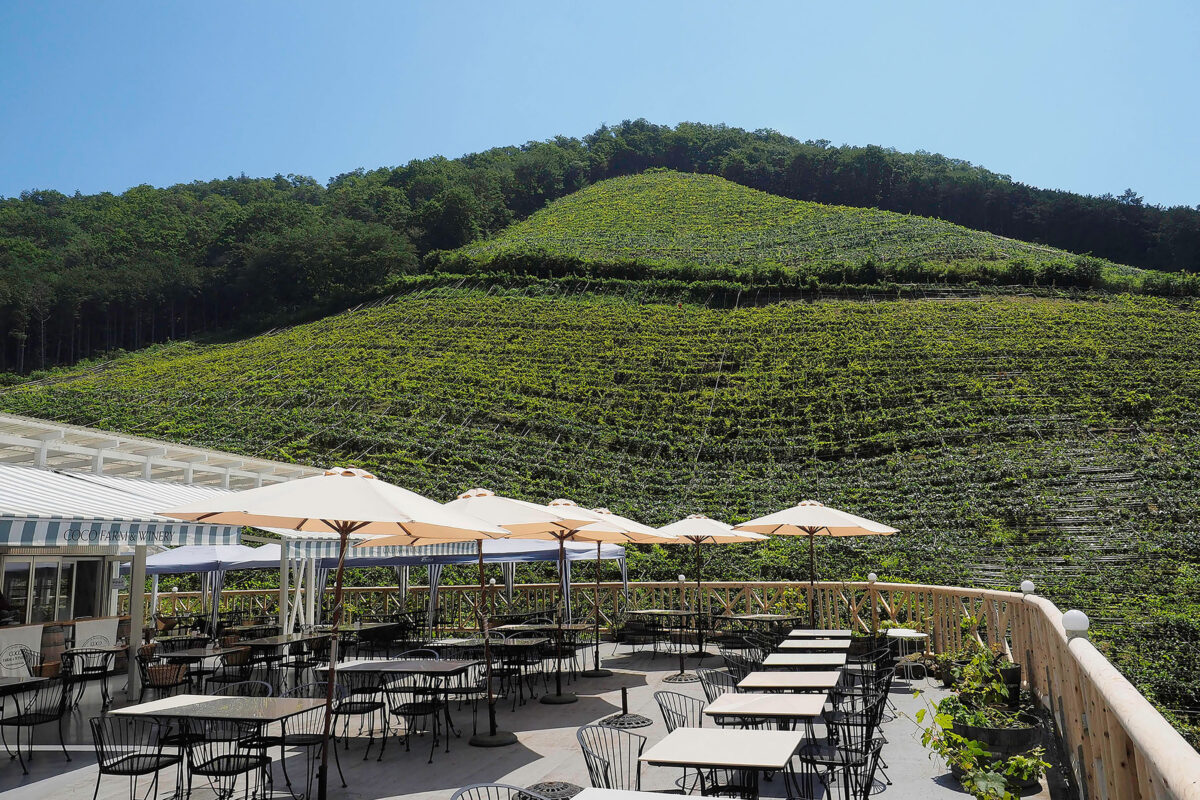 まず驚くのが、目の前に広がる平均斜度38度の急勾配なブドウ畑です。
